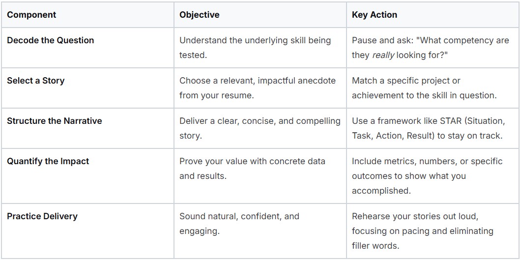 This table summarizes the core components for crafting a successful interview answer, from preparation to delivery.